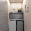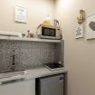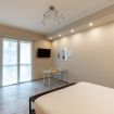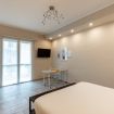 appartamento con camera da letto soggiorno , cucina abitabile , ampio bagno e grande balcone .